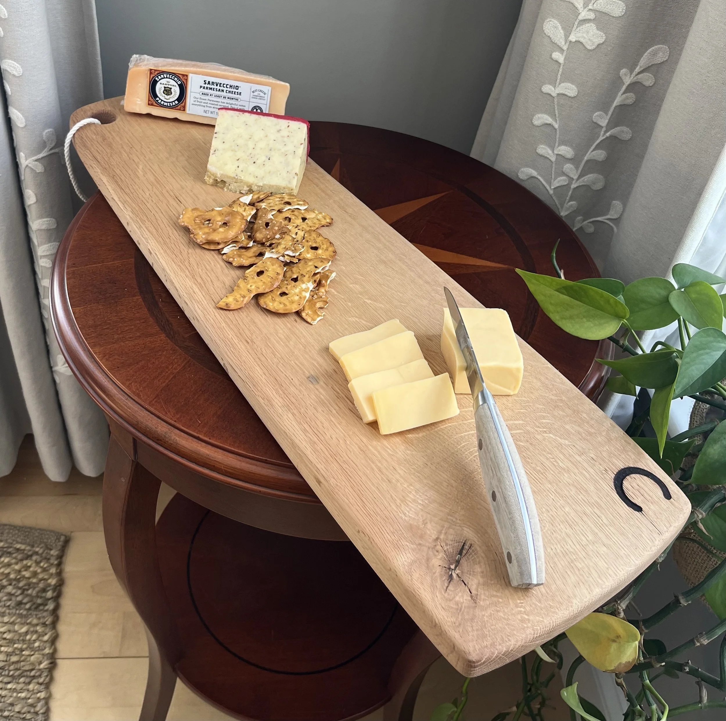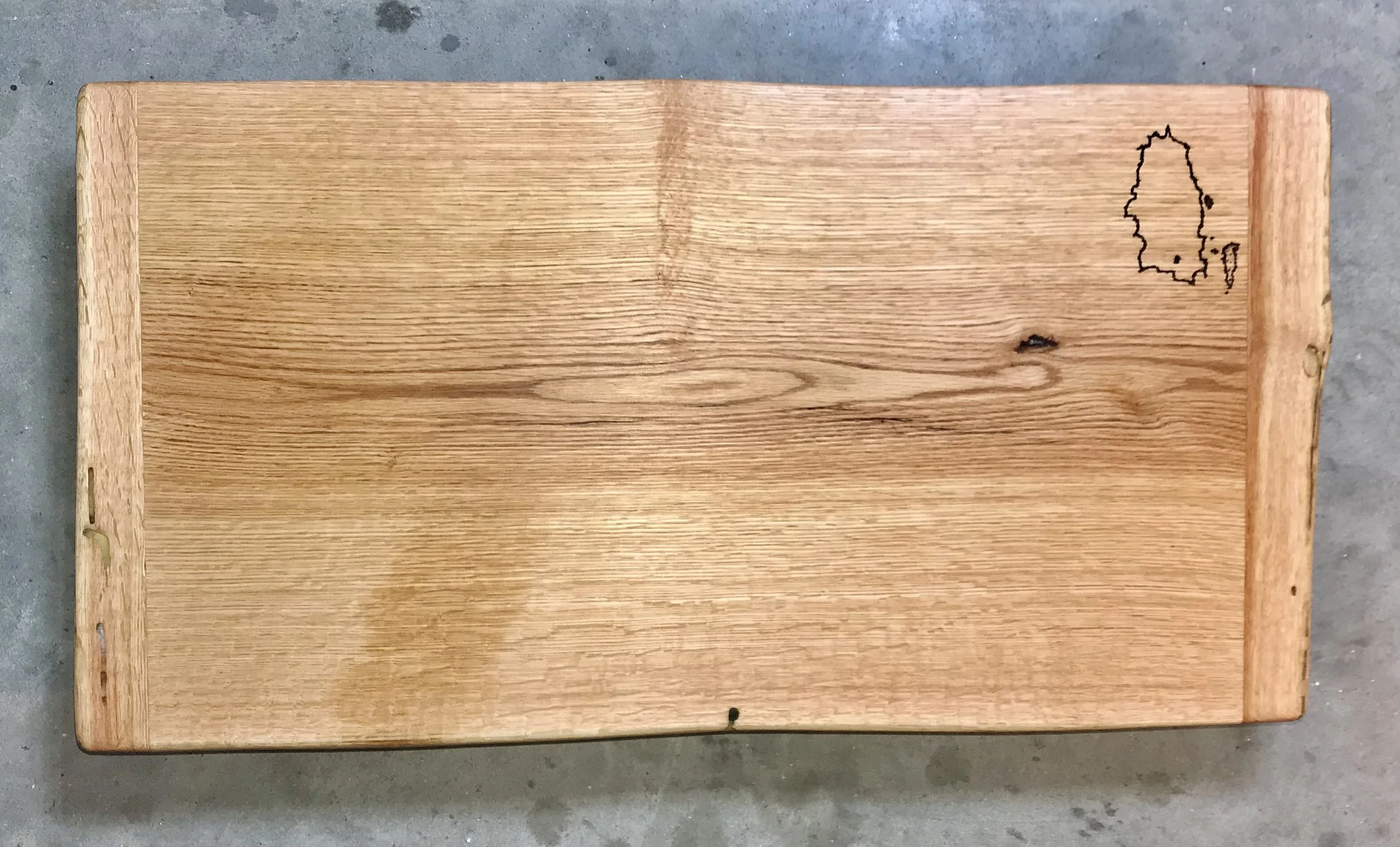 As a member of this creative community, you will have the rare opportunity to use some red oak from a tree that was felled and milled on Three Mile Island, as well as other local native hardwoods. You will work directly with the instructor in laying out the design, shape, materials, texture, features, and the finishing process. Completed boards will then be personalized through wood burning, branding, stamping or a combination of all three. Typical boards will measure about 10" wide x 20" long, but each board will have its own unique shape and dimensions.